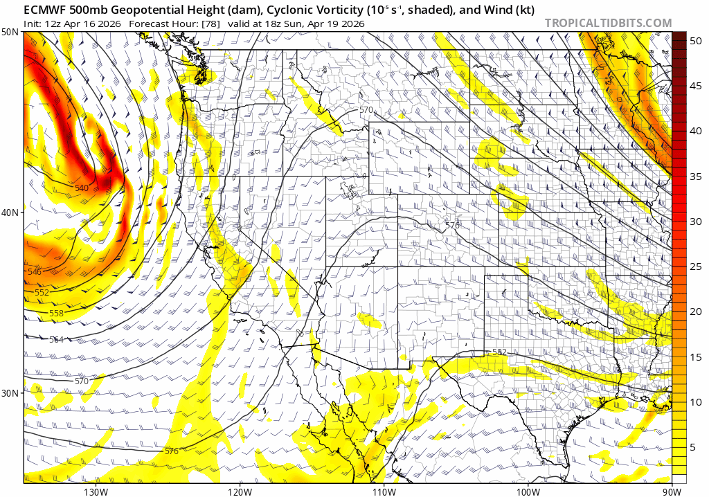 Today’s (4/16) cool, breezy weather associated with a departing trough in the Great Basin, gives way to a ridge of high pressure Fri – Sun (4/17-4/19) bringing mostly clear skies, moderating temperatures, and light winds for the first half of the coming weekend.