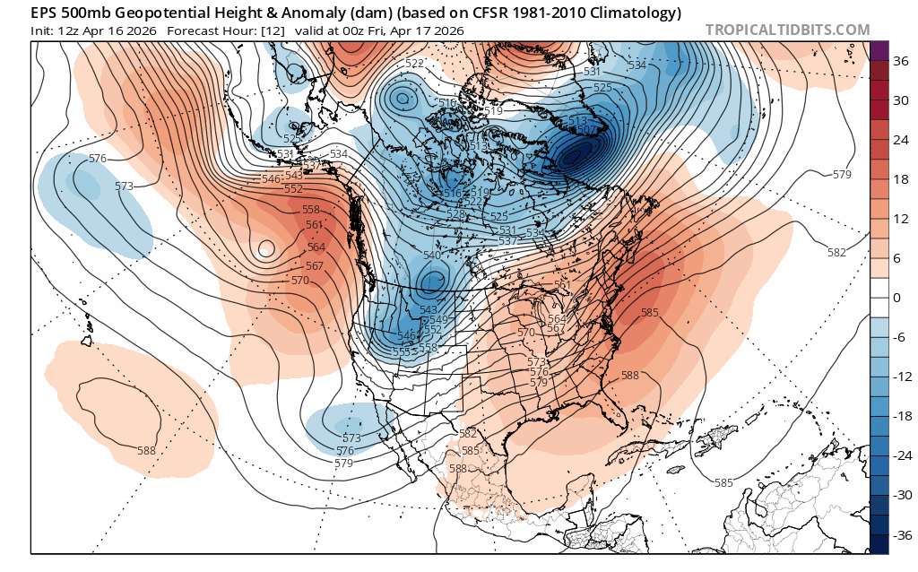 The 500mb anomaly analysis today through late next work week (4/16-4/23) helps illustrate the progressive pattern.