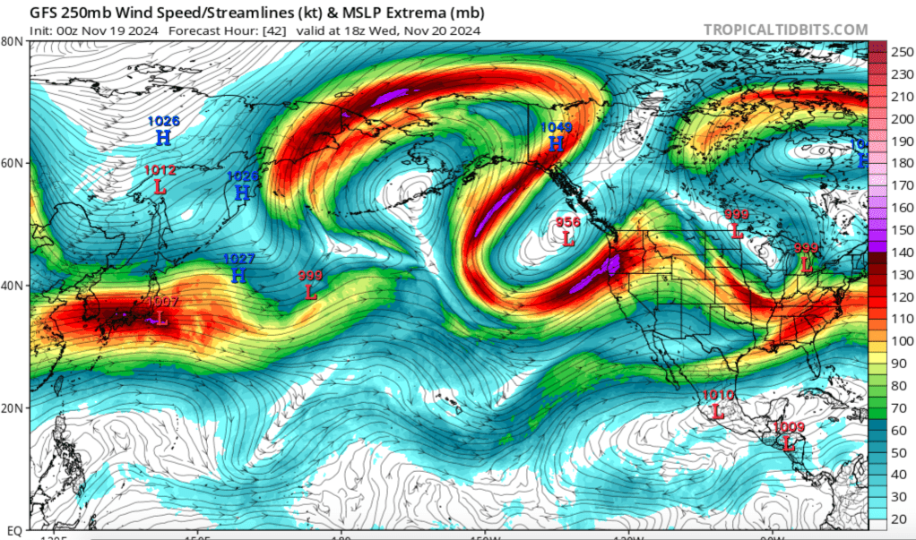 The cuprit? A deep, rapidly strengthening low off the PacNW coast that will steer an intense upper level jet right over NorCal and southern Oregon.