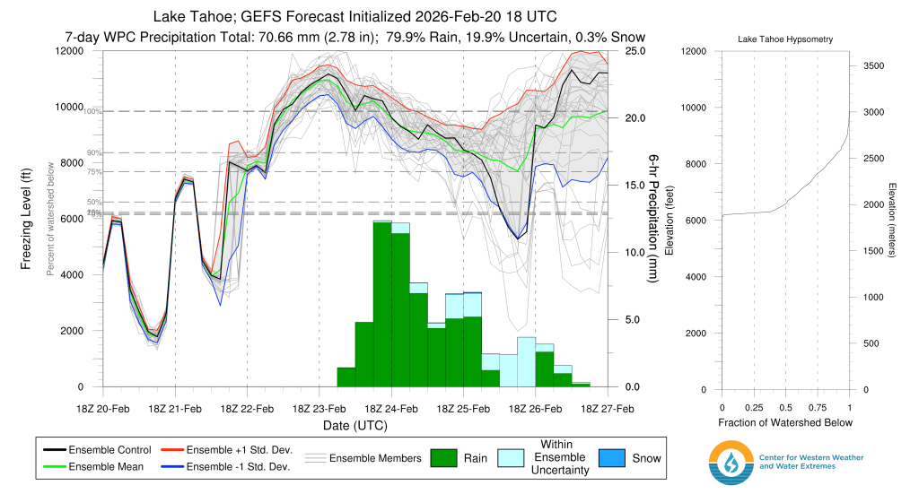 There’s some indication of another weaker frontal passage around mid week that would further cool temps and bring back chances of rain and snow above 7000-8000’. Total amounts look light (a few inches at best). Models still disagree significantly, keeping forecaster confidence low.