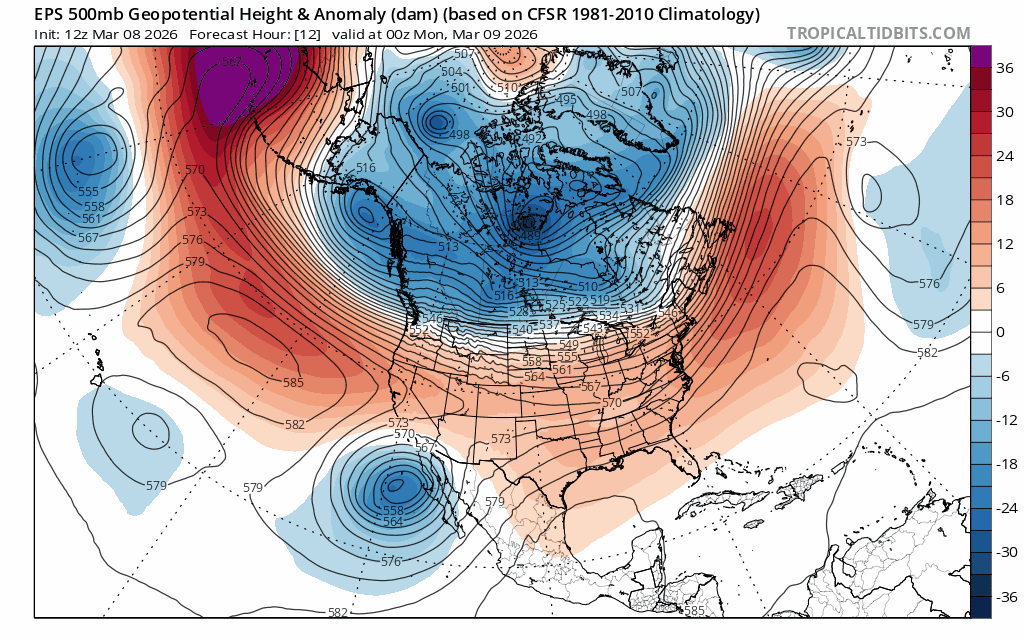As a result, temps will warm to well above average yet again, as noted by 2m temp anomalies from 3/8-3/15.