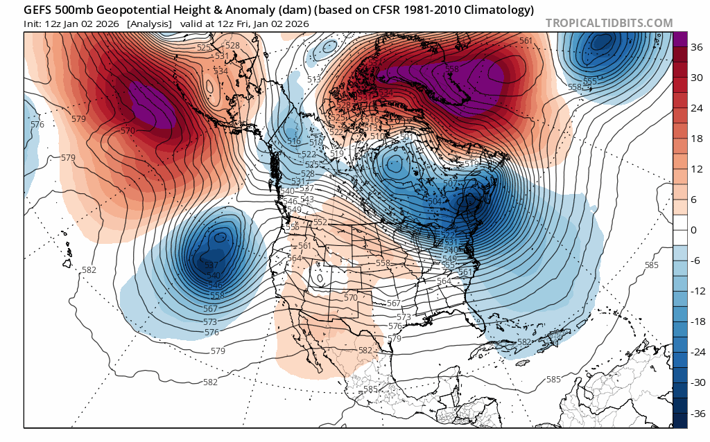 Looking way out into the second week of the month, ensembles suggest a ridge of high pressure building in the central-eastern Pacific, placing the Sierra in the descending branch of the jet stream in a cooler and drier than average pattern. It’s a long way out, but such patterns tend to be conducive for “inside sliders”, producing cold temps and light snow.