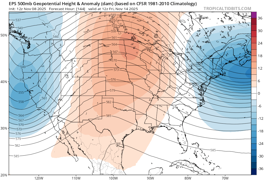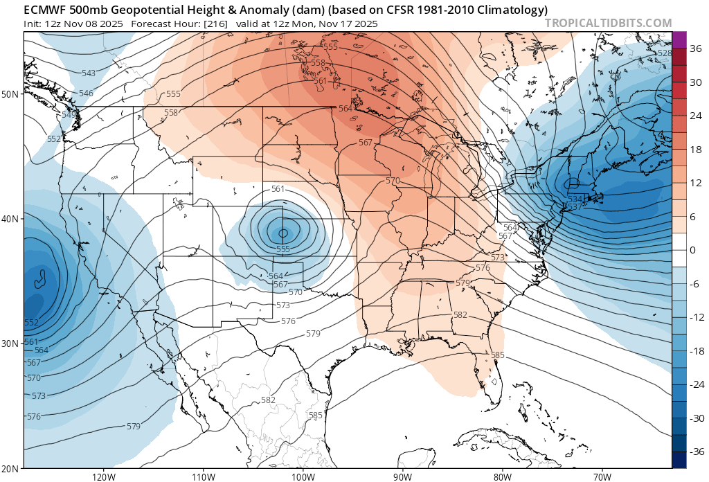The below examples showing atmospheric dynamics half way up in the atmosphere show the different storm track forecasts.